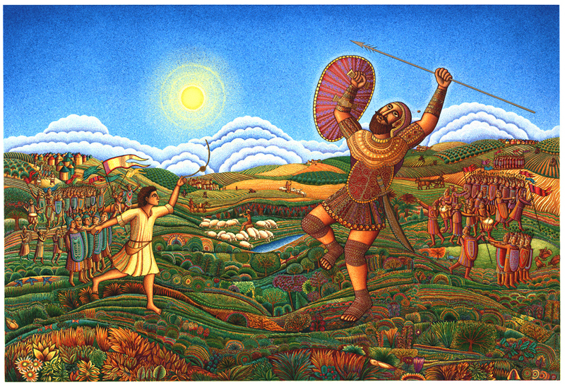 Swanson, John August. David and Goliath, from Art in the Christian Tradition, a project of the Vanderbilt Divinity Library, Nashville, TN.http://diglib.library.vanderbilt.edu/act-imagelink.pl?RC=56540 [retrieved September 17, 2018]. Original source: www.JohnAugustSwanson.com – copyright 2005 by John August Swanson.