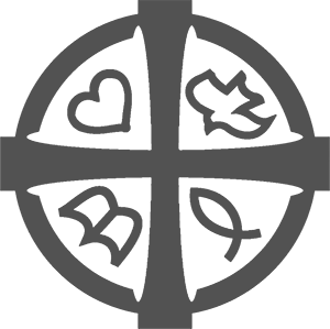 The four emblems, within the circle stand for the emphases we have in the Church.